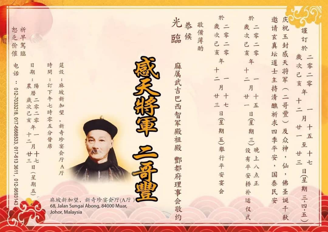 本殿第五届举办玉封感天将军(二哥豐) 庆㊗宝诞千秋晚宴